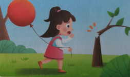 今天是個陽光明媚的日子,太陽灑在了大地上、灑在了大樹上、灑在了花草上,小麗穿著爸爸給她買的紅裙子、拿著媽媽給她買的紅氣球,興高采烈的去公園玩了。
