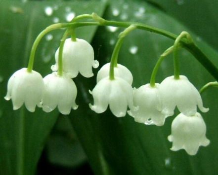 串串鈴鐺掛枝頭,個(gè)個(gè)酒杯滿(mǎn)枝腰,花兒雪白嫩如雪,嬰兒小帽戴頭上。
