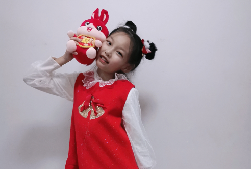 拿著小兔子,真是愛(ài)不釋手。
