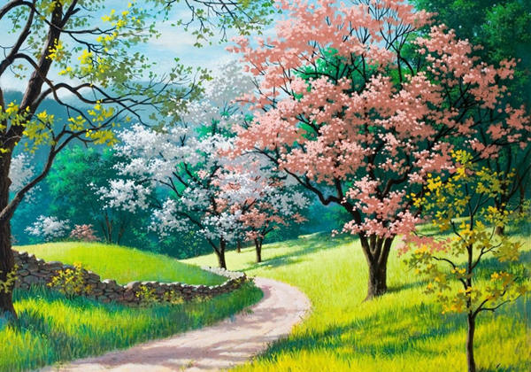 春風(fēng)拖著長(zhǎng)長(zhǎng)的裙衫,微笑著走進(jìn)公園。