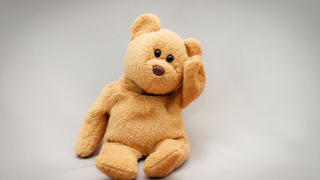 你看,小熊頭戴一頂牛仔帽,脖子上系著一條紅色三角巾,身穿皮夾克,腳踏黑皮鞋,騎著一匹木馬,活像一個精神的美國西部牛仔。